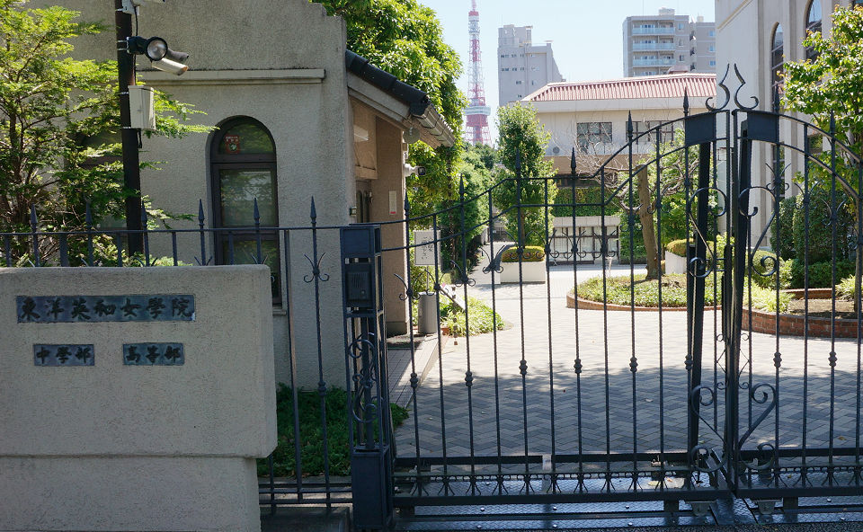 鳥居坂の東側にあるのは東洋英和女学院。設立は1884年、明治17年と100年以上の歴史をもつミッションスクールで、制服が人気のお嬢様学校ですね